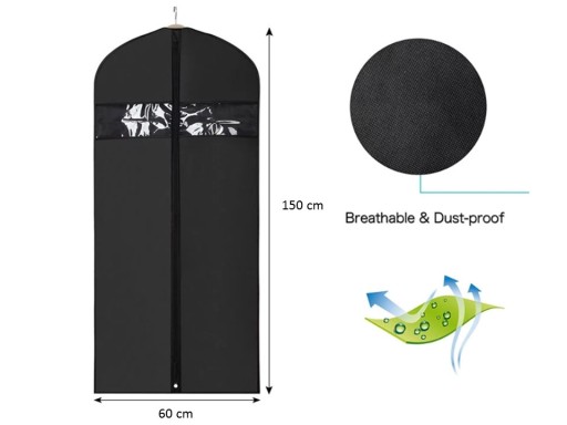 Przedmiotem sprzedaży jest pokrowiec na odzież o wymiarach 60x150cm