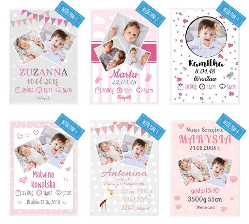Uwaga! Po zakupie prosimy o wskazanie wybranego wzoru koloru ramy oraz podanie imienia, daty, godziny, miejsca urodzenia, wagi i wzrostu dziecka.