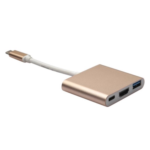 Nowoczesny adapter HDMI, wyposażony w najnowszy interfejs USB Typ-C na wejściu i port HDMI, USB 3.0 i USB typ C na wyjściu.