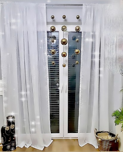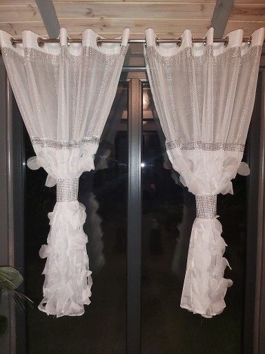Tkanina jest śliczna i mieniąca się pod wpływem światła, latem pięknie się mieni w oknie gdy zaświeci słońce, w okresie zimowym gdy zapalimy światło wnętrze okna pięknie połyskuje ;)