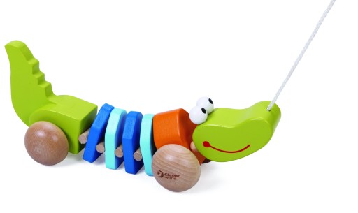 Spójrz na tego krokodyla! Uroczy, uśmiechający się zwierzaczek podąży za dzieckiem, gdziekolwiek ono pójdzie, wystarczy że będzie trzymało sznureczek. Krokodyl marki Classic World to genialna zabawka do ciągania, która podczas poruszania się wydaje przyjemne dla ucha dźwięki. Drewniana zabawka z kółeczkami i sznureczkiem zachęca dziecko do ćwiczenia chodzenia.
