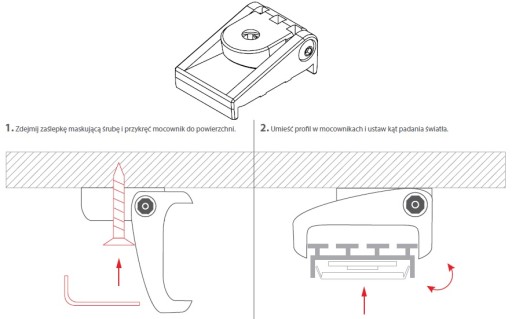 Mocownik regulowany do profili aluminiowych marki KLUŚ. Umożliwia łatwy i wygodny montaż do wszelkich powierzchni pozwalając przy tym na szeroki zakres regulacji kąta padania światła.