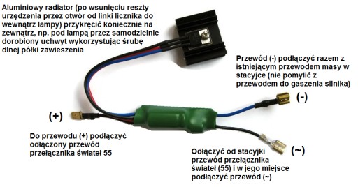 Schemat podłączenia zasilacza do żarówki reflektorowej LED w motocyklach WSK, WFM, SHL, Pannonia itp.