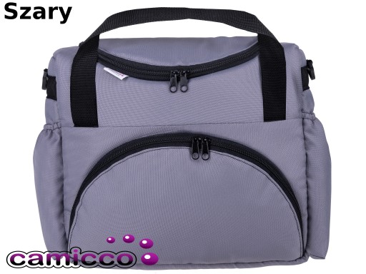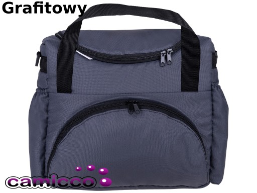 Boczne kieszonki zapewniają bezpieczny transport butelek, zapobiegające przed możliwym rozlaniem się. Z przodu torby znajduje się duża kieszeń zapinana na zamek