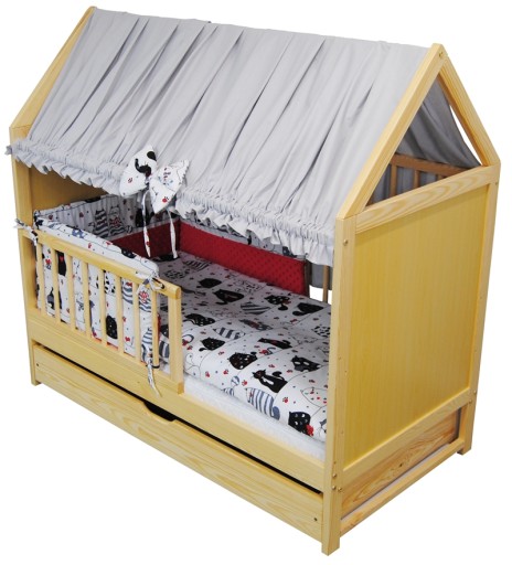 Łóżeczko/tapczanik Jaś domek z szufladą 120x60 w kolorze naturalna sosna (lakier bezbarwny).