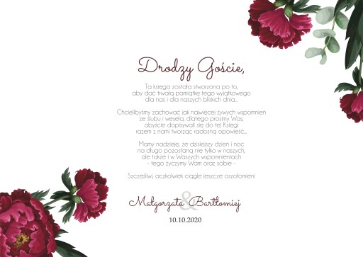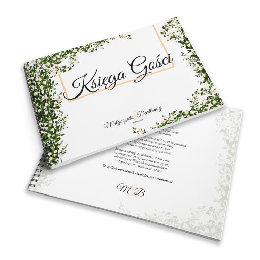 - Wybierz spośród naszych szablonów: wzór księgi, a następnie podaj w wiadomości dla sprzedającego wybrany szablon oraz dane do personalizacji (imiona Państwa Młodych, datę ślubu).