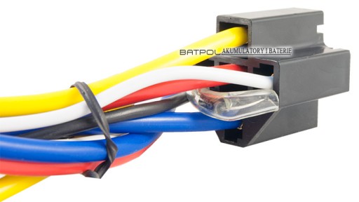 Gniazdo przekaźnika z profesjonalnie zaciśniętymi przewodami,