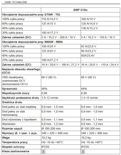 Instrukcja obsługi w języku polskim panelu głównego oraz spawarki Esab EMP 215ic