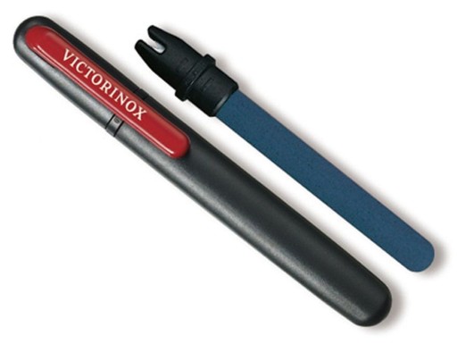 Koniec z tępymi ostrzami – ostrzarka Victorinox to proste i eleganckie narzędzie, dzięki któremu Twój nóż pozostanie tak ostry, jak w dniu zakupu. Wyposażono ją w ceramiczne tarcze oraz kamień szlifierski, zgrabnie wpasowane w obudowę o kształcie i rozmiarach długopisu. Drobiazg, który warto mieć pod ręką.