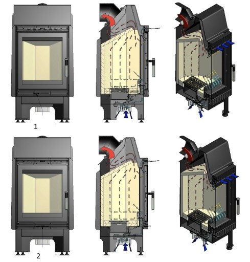 Wkład posiada dwuzakresową regulację powietrza z zewnątrz, a także regulację dopływu powietrza wtórnego, które ogranicza emisję CO oraz pomaga utrzymać szybę w czystości.
