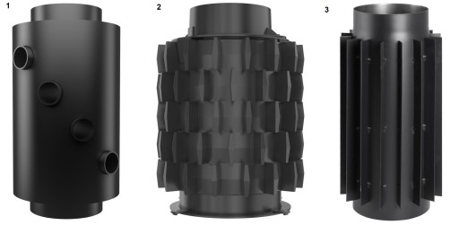 Na bokach i plecach wkładu umieszczone są radiatory zwiększające powierzchnię wymiany ciepła