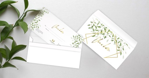 Do voucherów proponujemy także eleganckie, białe koperty z Twoim LOGO. Zaprojektowane tak – by razem z bonami podarunkowymi tworzyły przepiękny zestaw.