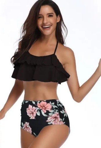 ✅WIĄZANE RAMIĄCZKA, BIKINI Z FALBANKĄ DELIKATNIE ZAKRYWAJĄCĄ BRZUCH, WYJMOWANE WKŁADKI