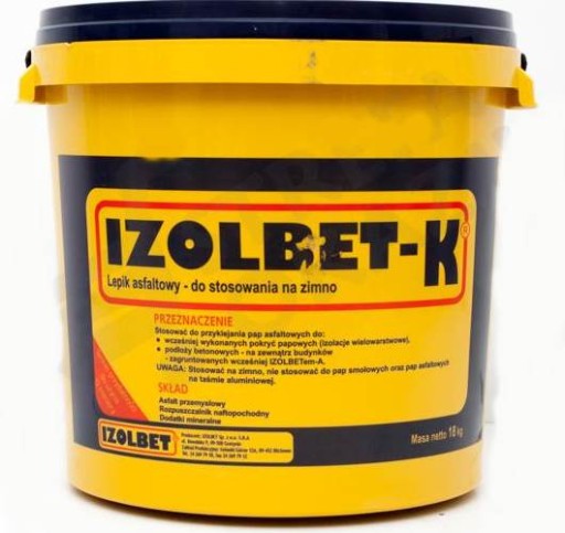 Do przyklejania pap asfaltowych do: wcześniej wykonanych pokryć papowych (izolacje wielowarstwowe), podłoży betonowych na zewnątrz budynków zagruntowanych wcześniej IZOLBETem-A. UWAGA ! Stosować na zimno. Nie stosować do pap smołowych oraz pap asfaltowych na taśmie aluminiowej.