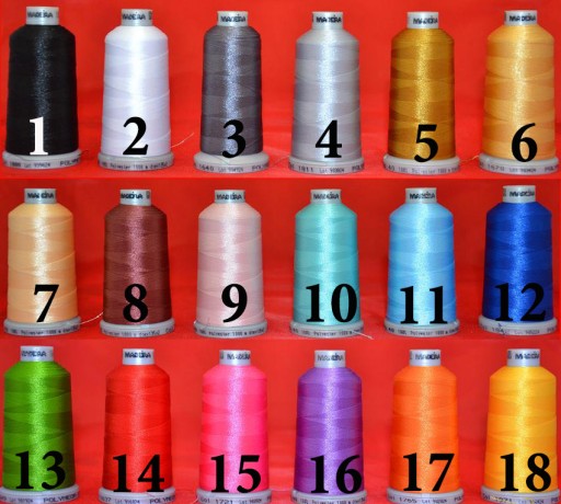 4. srebrny, 5. złoty, 6. jasny złoty, 7. ecru, 8. brąz, 9.jasny róż, 10. turkus, 11. jasny niebieski, 12. granat, 13. zieleń, 14.czerwony, 15. róż, 16.fiolet, 17. pomarańcz, 18. żółty.