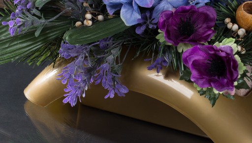 Donica koloru złotego, służy do dekoracji, tworzenia kompozycji oraz stroików.
