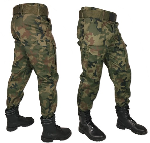 Wykonane są w Polsce przez polskiego producenta z tkaniny mundurowej US 18 o splocie 70% bawełna 30% poliester.Połączenie tych dwóch włókien daje w efekcie spodnie o dużej wytrzymałości na przetarcia i rozdarcia.Spodnie mają klasyczny styl wojskowy.Nogawka zwężana ,zakończona gumką a na udach 2 kieszenie zewnętrzne zapinane na guziki.Rozporek spodni także zapinany jest na guziki. Szlufki przystosowane do szerokich pasów. Idealnie nadają się dla Wojska, Harcerstwa, Agencji Ochrony, Survivalu, jak również codziennego użytkowania.