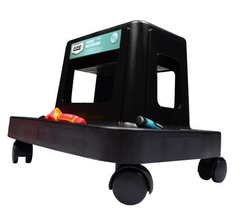 Stołek wyposażony w praktyczne zagłębienia na drobne przedmioty typu: śruby, nakrętki, podkładki itp