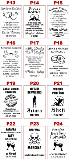 Wyślij do nas maila z charakterystyką swojego zamówienia: 1) Twoja dedykacja 2) Rodzaj czcionki 3 ) nr wybranej grafiki. Uwaga: na karafce mogą Państwo wybrać również jeden z naszych projektów (patrz zdjęcia).