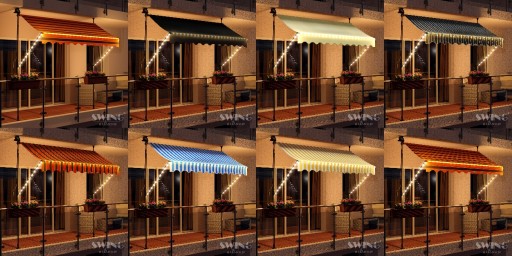 Swing & Harmonie® LED to idealny poszycie chroniące przed słońcem, a zarazem przyciągający wzrok w nocy. Markiza jest dostępna w 7 różnych kolorach i 6 różnych szerokościach. Ekskluzywne oświetlenie LED można łatwo włączyć i wyłączyć ręcznie. Dostarczony moduł słoneczny ładuje zintegrowaną baterię w ciągu dnia. Bez wiercenia i wkrętów markizę można łatwo i szybko zamontować na balkonie lub tarasie. Do montażu mocowane są dwa teleskopowe drążki między podłogą a sufitem lub podłogą i zwisem dachu. Teleskopowe drążki są regulowane na wysokość 230-300 cm i dzięki temu kompatybilne z prawie każdym balkonem lub tarasem. Dzięki dodatkowym przymocowanym nóżkom można zwiększyć napięcie, aby uzyskać maksymalną stabilność. Tkanina markizy składa się z tkaniny poliestrowej o gramaturze 280 g / m² i została dodatkowo wyposażona w powłokę PU. Jest odporny na promieniowanie UV, a także odpycha brud i wodę. Szybkie i płynne wsuwanie i wysuwanie zapewnia ręczna korba z podwójną przekładnią. Kąt nachylenia markiz można regulować w zakresie od 0 ° do 180 °. Masywna rama została całkowicie pomalowana proszkowo. Powłoka nie tylko wygląda szlachetnie, ale także chroni metal przed zewnętrznymi warunkami pogodowymi. W przeciwieństwie do po prostu malowanych markiz, powłoka proszkowa jest całkowicie odporna na zarysowania i nierdzewna.