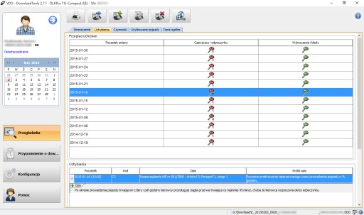 - kiedy DLK Pro był ostatnio użyty do odczytu danych z pojazdu lub karty kierowcy
