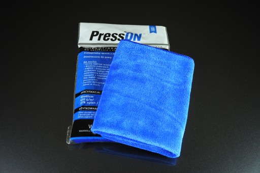 W skład zestawu wchodzi także profesjonalny ręcznik z mikrofibry marki PRESSON o wymiarach 40x40cm i grubości 420g/m2, dedykowany głównie dla myjni samochodowych i firm sprzątających.