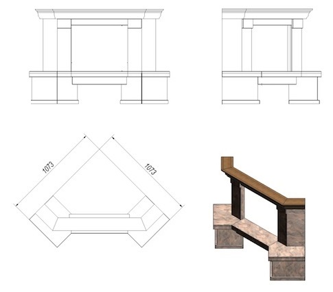 Zestaw kominek: obudowa kominkowa Amore narożna wraz z wkładem EKO z płaszczem wodnym o mocy 8 kw + akcesoria montażowe