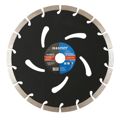 Tarcza diamentowa Mastiff fi 230 mm do obróbki materiałów budowlanych: beton, cegła, kostka brukowa, klinkier, gazobeton, płytki ceramiczne. Profesjonalna tarcza diamentowa do cięcia spawana laserowo. Przeznaczona do pracy w szlifierkach kątowych na sucho.