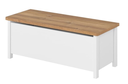 Skrzynia STORY 10 posiada podnośnikowi gazowe, można ją łatwo i wygodnie otworzyć i zamknąć. Mebel wykonano z wytrzymałej płyty laminowanej wykończonej trwałym obrzeżem ABS.