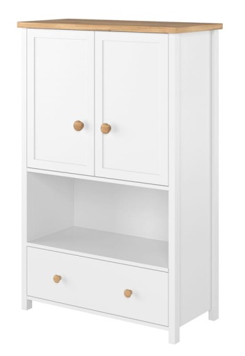 Komoda STORY 11 z bieliźniarką z dwojgiem drzwi, półką na książki oraz z głęboką, łatwo dostępną szufladą. Mebel wykonano z wytrzymałej płyty laminowanej wykończonej trwałym obrzeżem ABS. Uchwyty z tworzywa.