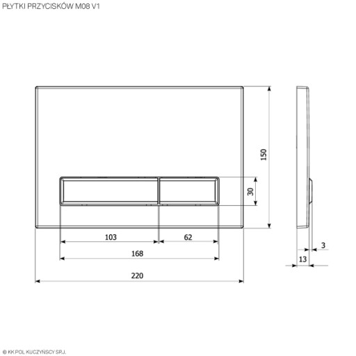 - wys. x szer. x gł.: 150 x 220 x 13 mm