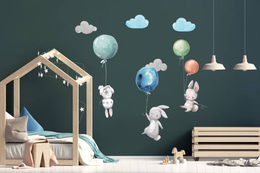 Naklejki na ścianę - Hit tego sezonu - Króliki z balonami.