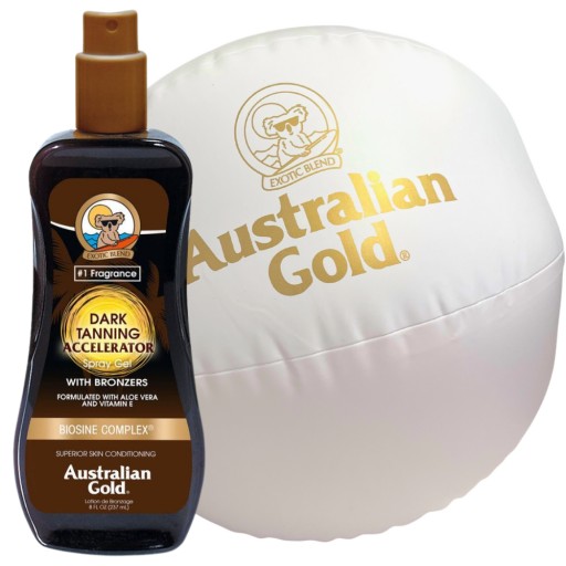 Australian Gold Dark Tanning Accelerator Spray Żel z Bronzerem tylko dla doświadczonych miłośników opalania, gdyż nie zawiera żadnego filtra ochronnego.