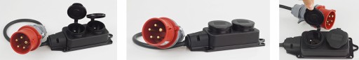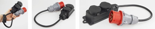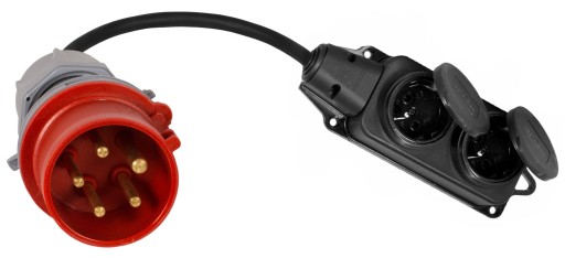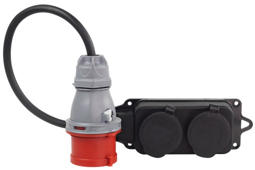 Adapter rozgałęźnika gumowego, przejściówka, przenośna, z wtyczki 32A 5P na dwójnik 2x230V 16A.