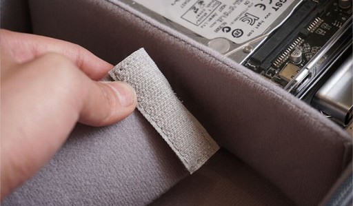 - Zamykane na suwak przegródki pozwalają na przechowywanie pendrivów, kart pamięci, dysków, słuchawek, przewodów itp.