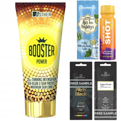 ❗Asther Booster Power Accelerator + Gratisy Saszetka Po opalaniu 15ml, Drinki Do Opalania, 2 Losowe Próbki po 5ml❗