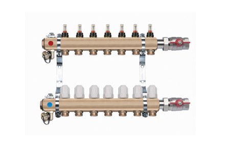 - zawory termostatyczne na belce powrotnej wyposażone w pokrętła do ręcznej regulacji z możliwością podłączenia głowicy termoelektrycznej (9)