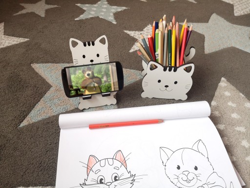 Śliczny przybornik w kształcie kotka przeznaczony na kredki, ołówki mazaki, itp.