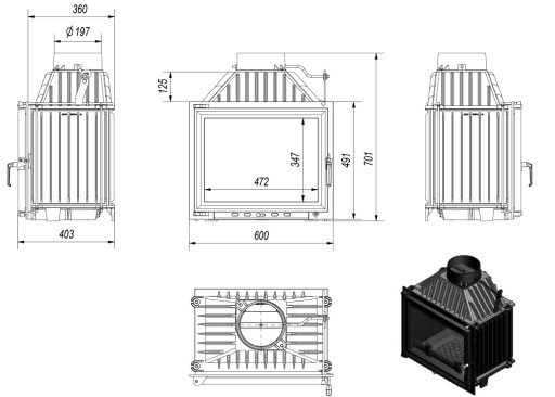 - Ścianki paleniska o minimalnej grubości 8mm - gwarantują bezawaryjne działanie paleniska. Gęsto rozmieszczone radiatory - dzięki nim kominek przekazuje więcej ciepła do otoczenia. Materiał żeliwo szare - wytrzymałe, długo utrzymujące temperaturę