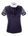 Koszulka konkursowa Patricia z krótkim rękawkiem. Dekolt ozdobiony koronką oraz rzędami kryształków. Ukryte zapięcie na napy sprawia, że koszulka wygląda niezwykle elegancko. Rękawki wykonane z koronki.