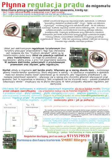 Fotografie poniżej przedstawiają oryginalną płytę MIG-250-3 stosowaną w migomatach MidiMig 210/2 i innych. Fotografie umieszczone są tutaj w celach orientacyjnych, a widoczne na nich płyty nie są przedmiotem aukcji.