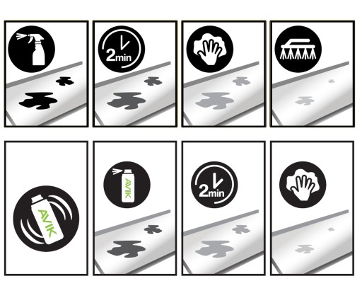 - Spryskać odtłuszczaczem AVIK zabrudzoną powierzchnię.