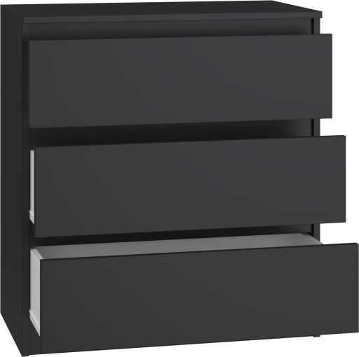 Dzięki trzem pojemnym szufladom komoda zapewnia dużo miejsca do przechowywania, pomagając w organizacji ubrań, dokumentów i innych przedmiotów codziennego użytku.