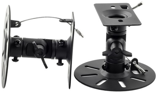Ścienny uchwyt głośnikowy do montażu głośników satelitarnych na ścianie. Regulowany system, pionowe i poziome nachylenie, obrót 360°, pochylenie w dół 70°. Zdejmowany zamek bezpieczeństwa.