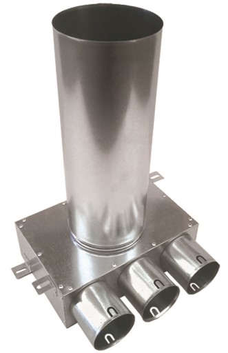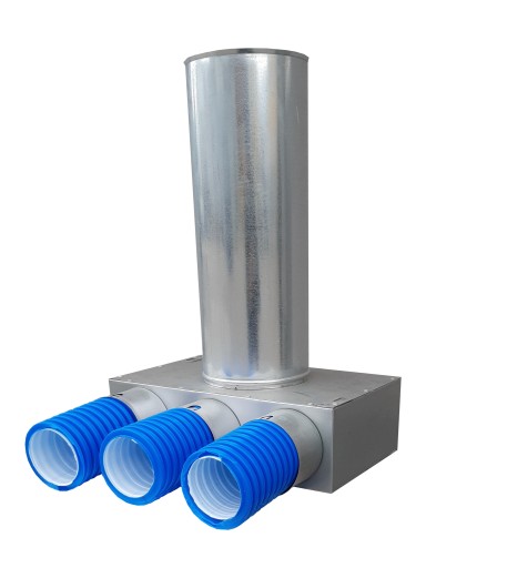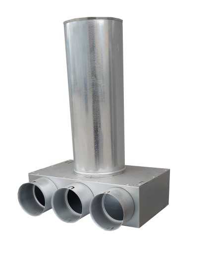 Służy do rozprowadzenia powietrza w danym pomieszczeniu. Powietrze doprowadzane jest do niej przewodami antybakteryjnymi (fi 75mm/ 60mm) a następnie poprzez zamontowanie anemostatu na jej wyjściu (fi 125 / 100mm) rozprowadzane jest w danym pokoju. Skrzynka dzięki specjalnej kierownicy, płynnie przejmuje powietrze dostarczone przewodami a następnie kieruje je w stronę anemostatu. Takie rozwiązanie w dużym stopniu zmniejsza straty powstające w przepływie powietrza.
