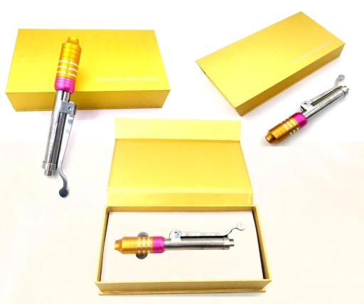 Zestaw zawiera jednorazowe dozowniki oraz igły pobraniowe. Dozownik napełniamy odpowiednim preparatem - kwasem hialuronowym lub substancją przeznaczoną do mezoterapii mikroigłowej - w zależności od potrzeb zabiegowych.