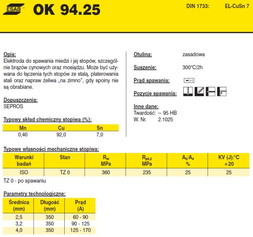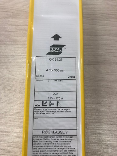 ORYGINALNA ELEKTRODA FIRMY ESAB DO SPAWANIA MIEDZI , BRĄZU ORAZ MOSIĄDZU - OK 94.25