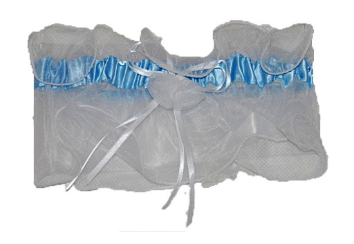 Podwiązka wykonana została z pojedynczej warstwy szyfonu i przeszytej pośrodku przez całą jej długość atłasowej wstążki