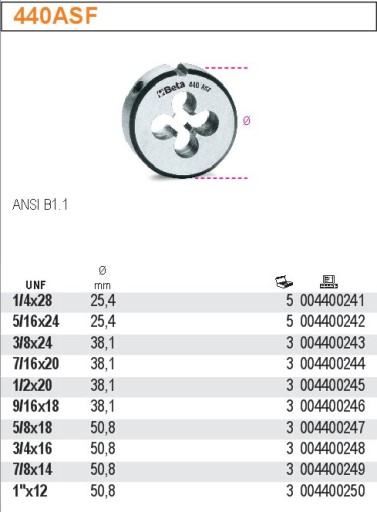 NARZYNKA OKRĄGŁA GWINT UNF CAL 3/4X16 BETA 440ASF