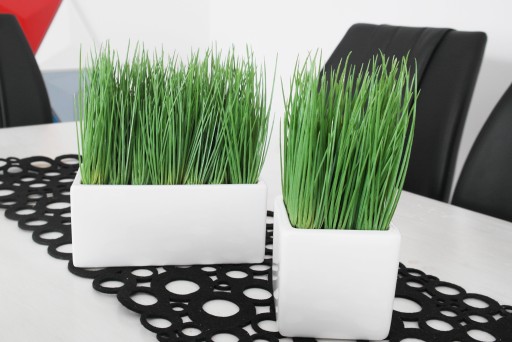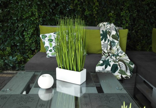 Doskonale znajdzie zastosowanie w hotelach, barach,klubach, restauracjach, biurach. Nadaje się do użytku wewnątrz budynków lub pod zadaszeniem. Nie są wymagające w pielęgnacji. Łatwe w czyszczeniu. Mogą nam służyć przez lata wprowadzając spokój zieleni dzięki naturalnemu odwzorowaniu wyglądu naturalnych roślin. Trawa dostarczana jest wraz z doniczką - jak na zdjęciu po lewej.